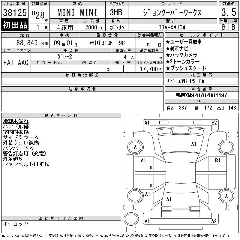 BMW MINI с аукциона Японии CAA Tokyo лот № 38125