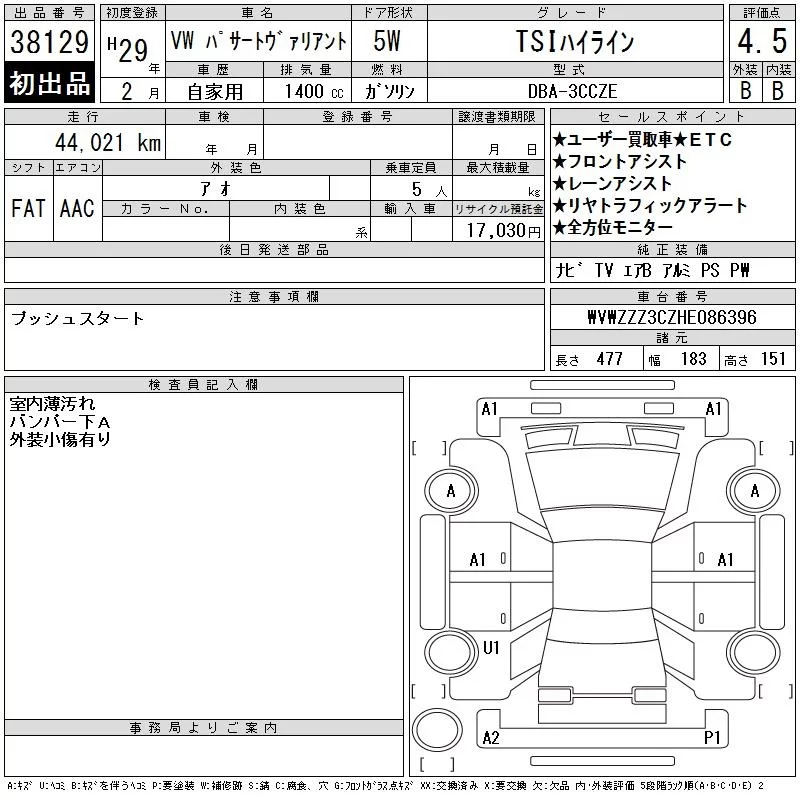 Volkswagen PASSAT VARIANT с аукциона Японии CAA Tokyo лот № 38129