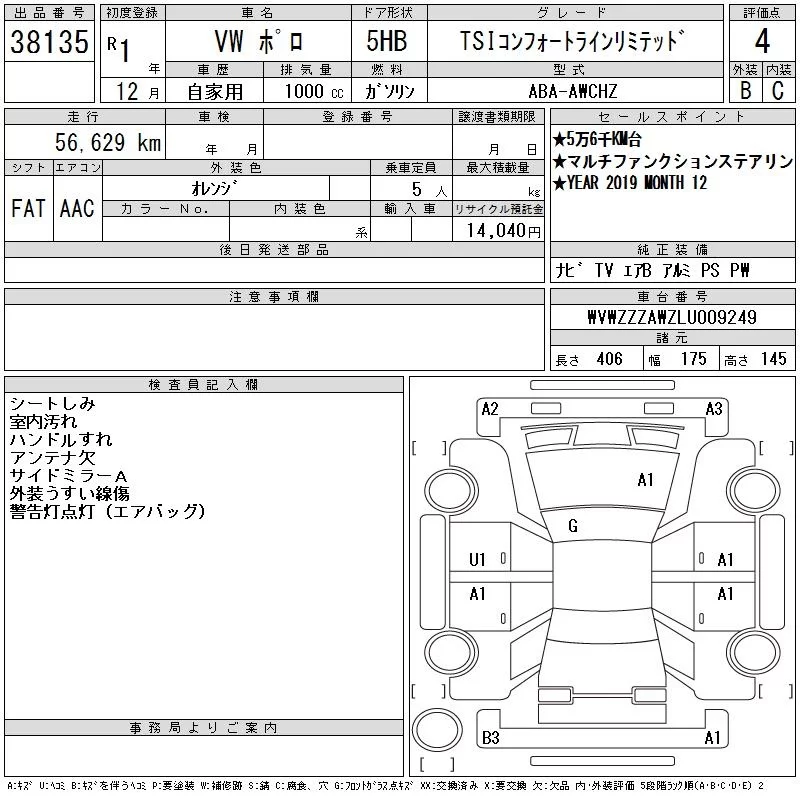 Volkswagen POLO с аукциона Японии CAA Tokyo лот № 38135