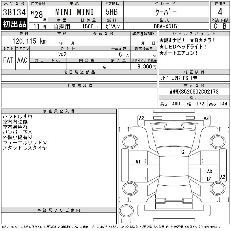 BMW MINI с аукциона Японии CAA Tokyo лот № 38134