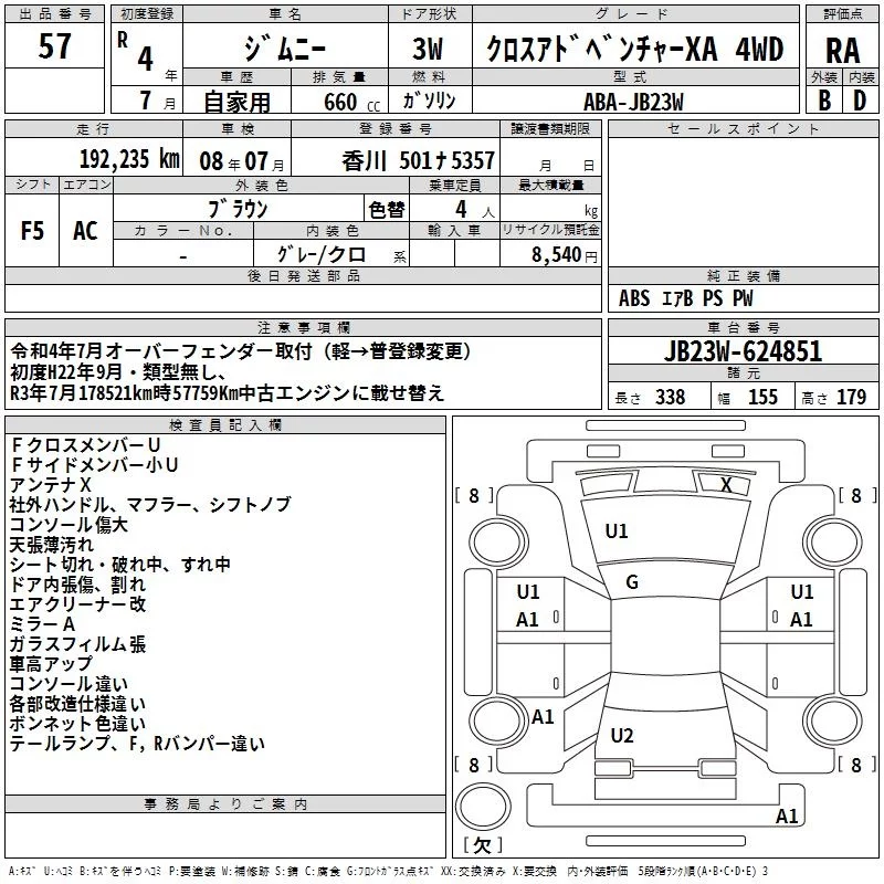 Suzuki JIMNY с аукциона Японии TAA Shikoku лот № 57
