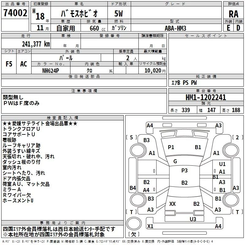 Honda VAMOS с аукциона Японии TAA Shikoku лот № 74002