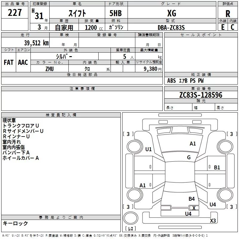 Suzuki SWIFT с аукциона Японии TAA Kyushu лот № 227