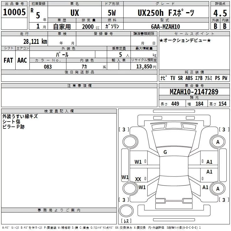 Lexus UX с аукциона Японии TAA Kinki лот № 10005