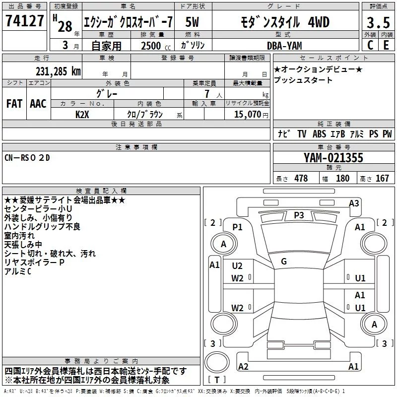 Subaru EXIGA с аукциона Японии TAA Shikoku лот № 74127