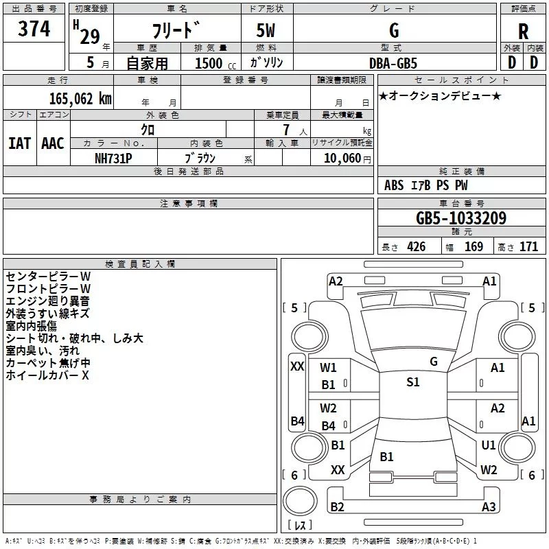 Honda FREED с аукциона Японии TAA Kyushu лот № 374