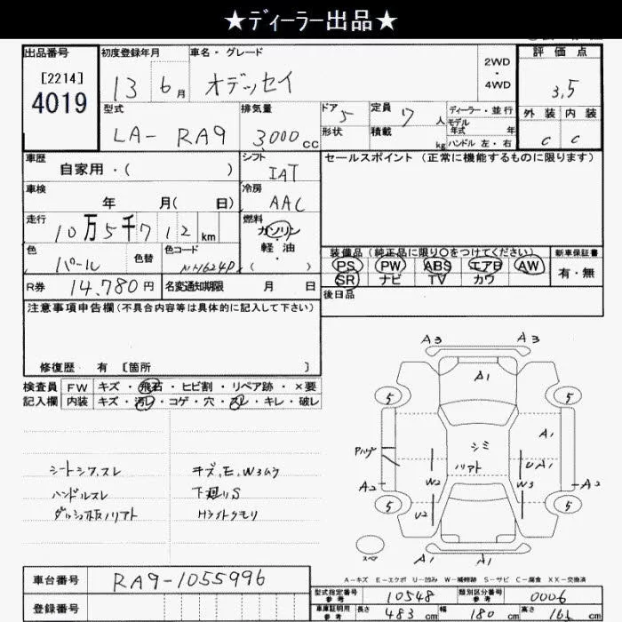 Honda ODYSSEY с аукциона Японии JU Saitama лот № 4019