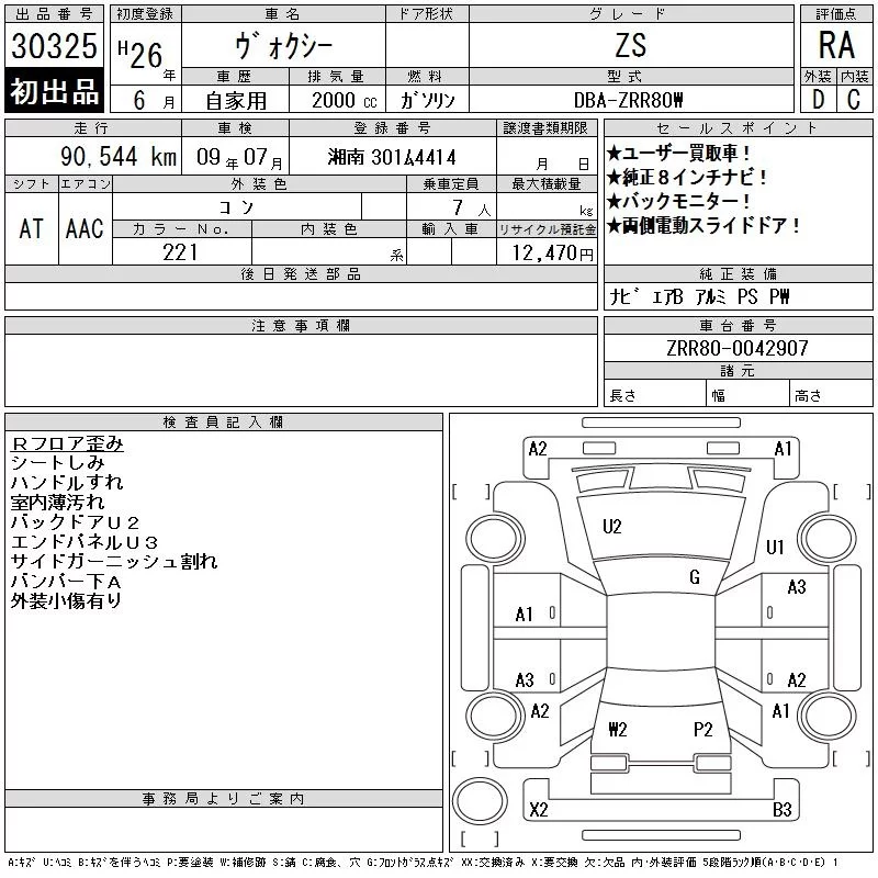 Toyota VOXY с аукциона Японии CAA Tokyo лот № 30325