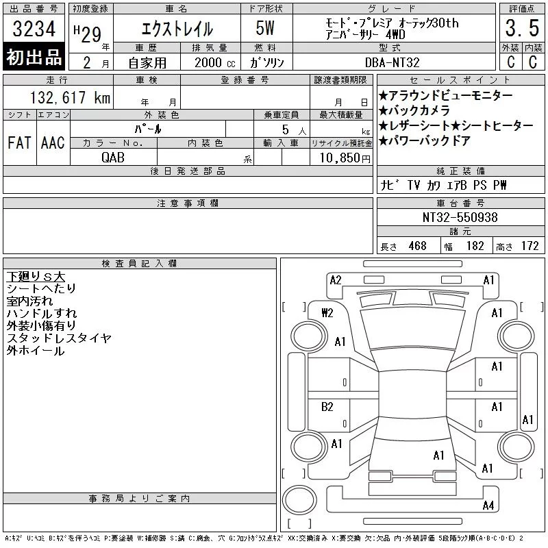 Nissan X-TRAIL с аукциона Японии CAA Tohoku лот № 3234
