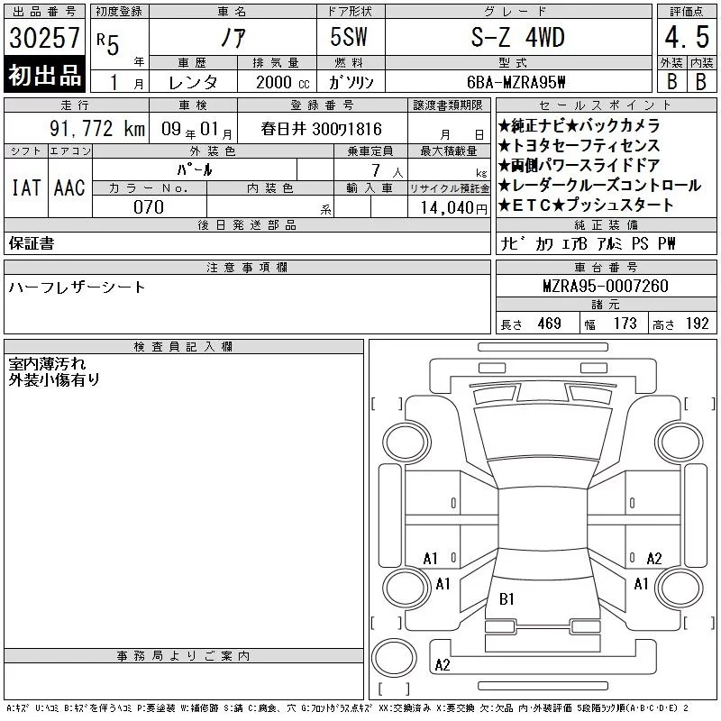 Toyota NOAH с аукциона Японии CAA Gifu лот № 30257