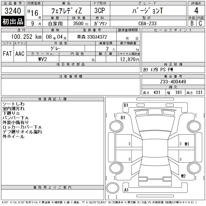 Nissan FAIRLADYZ с аукциона Японии CAA Tohoku лот № 3240