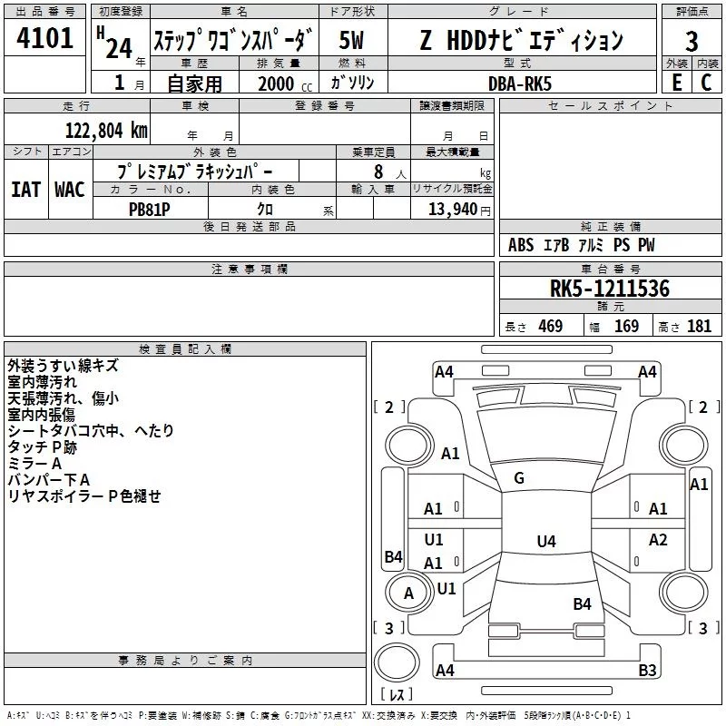 Honda STEP WAGON с аукциона Японии TAA Shikoku лот № 4101