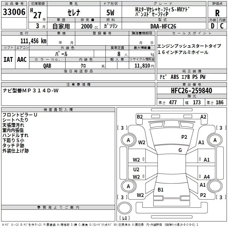 Nissan SERENA с аукциона Японии TAA Minami Kyushu лот № 33006