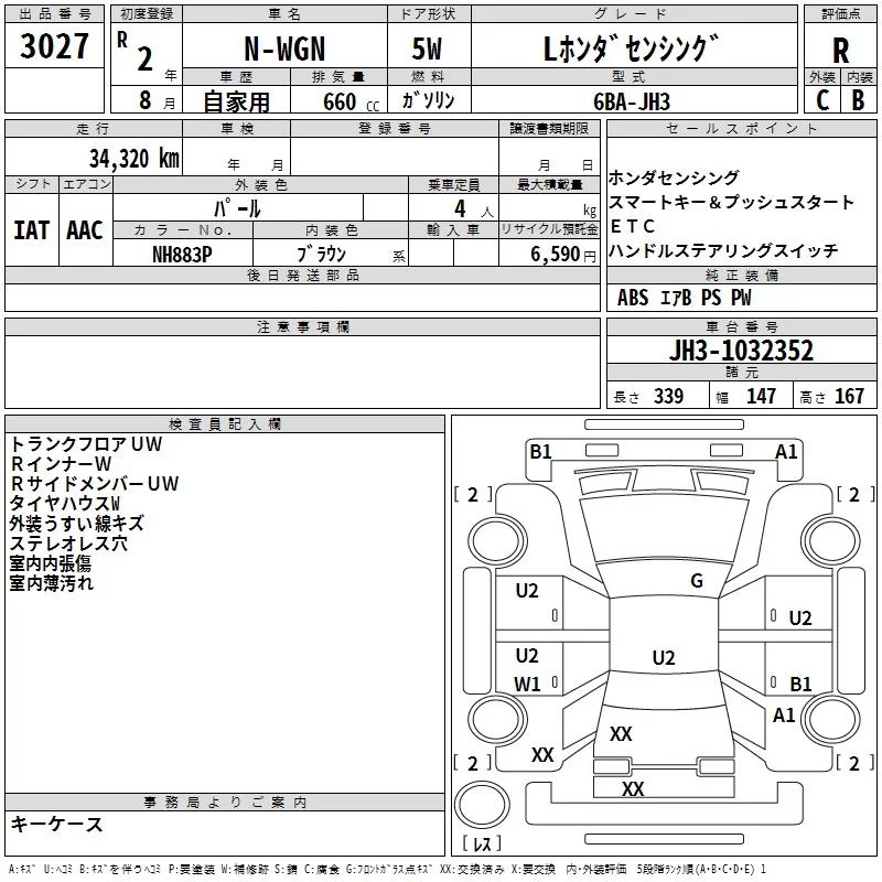 Honda N WGN с аукциона Японии TAA Kyushu лот № 3027