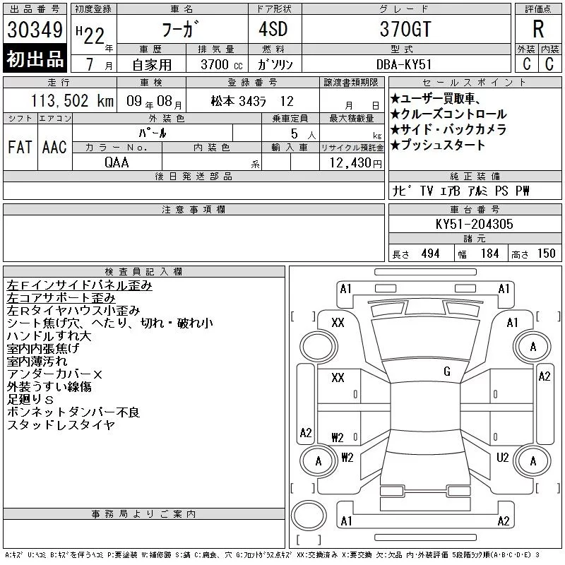 Nissan FUGA с аукциона Японии CAA Tokyo лот № 30349