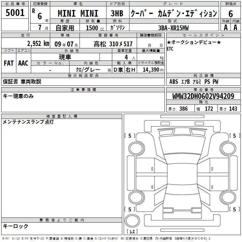 BMW MINI с аукциона Японии TAA Shikoku лот № 5001