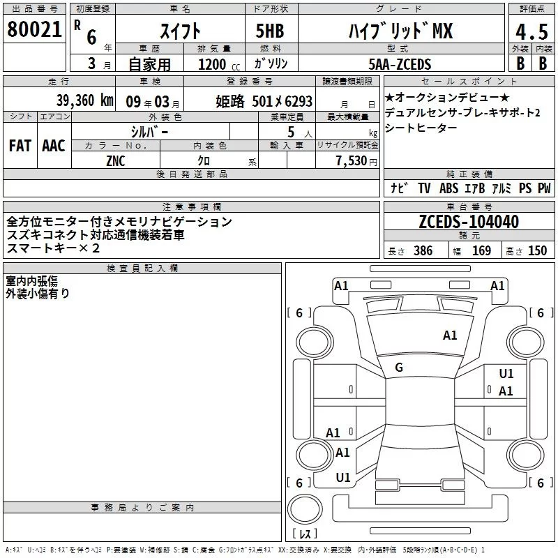 Suzuki SWIFT с аукциона Японии TAA Kinki лот № 80021