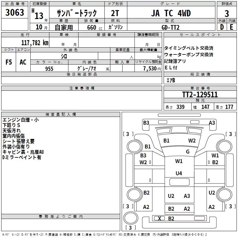 Subaru SAMBAR с аукциона Японии TAA Kyushu лот № 3063