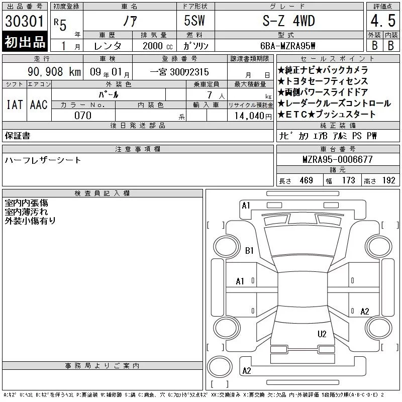 Toyota NOAH с аукциона Японии CAA Gifu лот № 30301