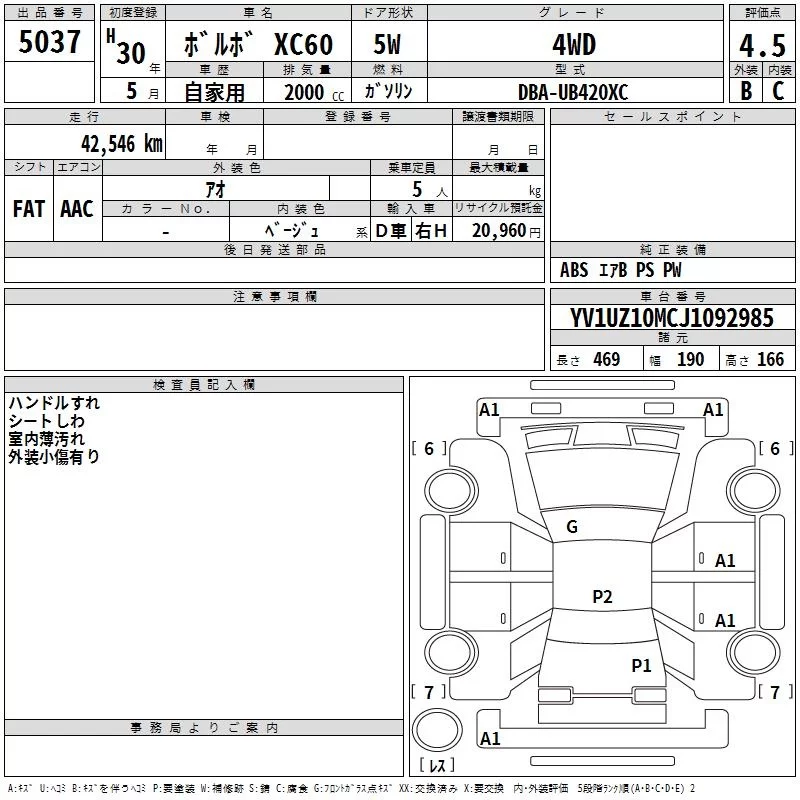 Volvo XC60 с аукциона Японии TAA Kinki лот № 5037