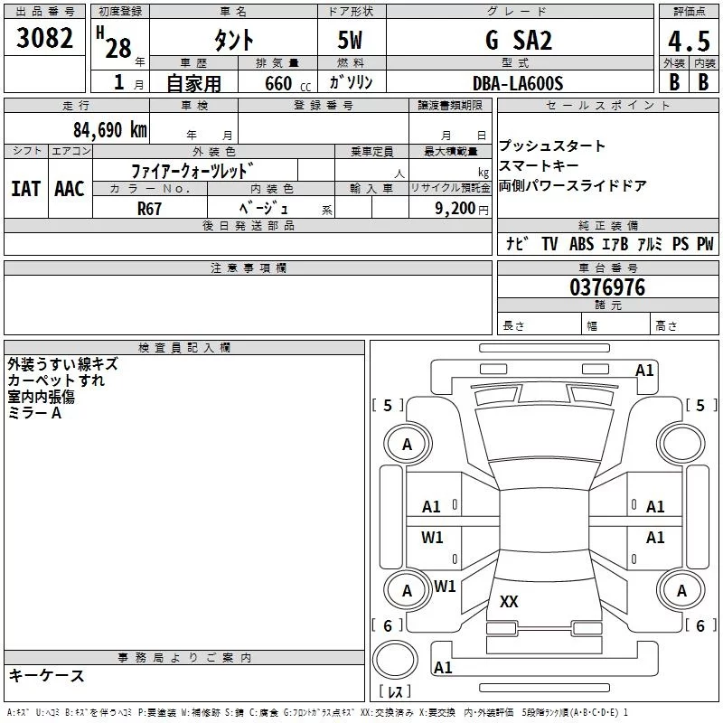 Daihatsu TANTO с аукциона Японии TAA Kyushu лот № 3082