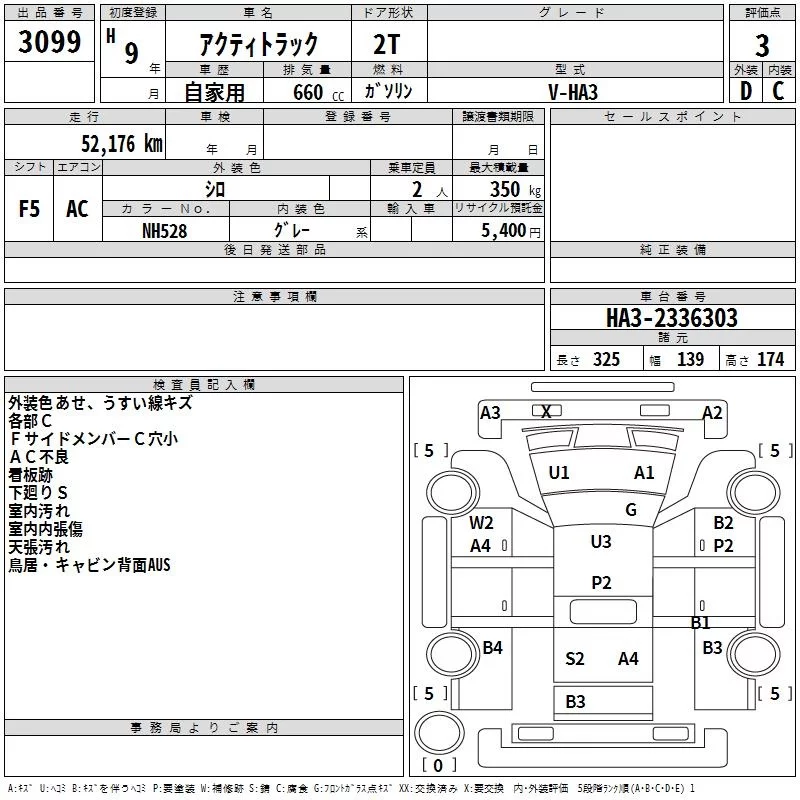 Honda ACTY TRUCK с аукциона Японии TAA Kyushu лот № 3099