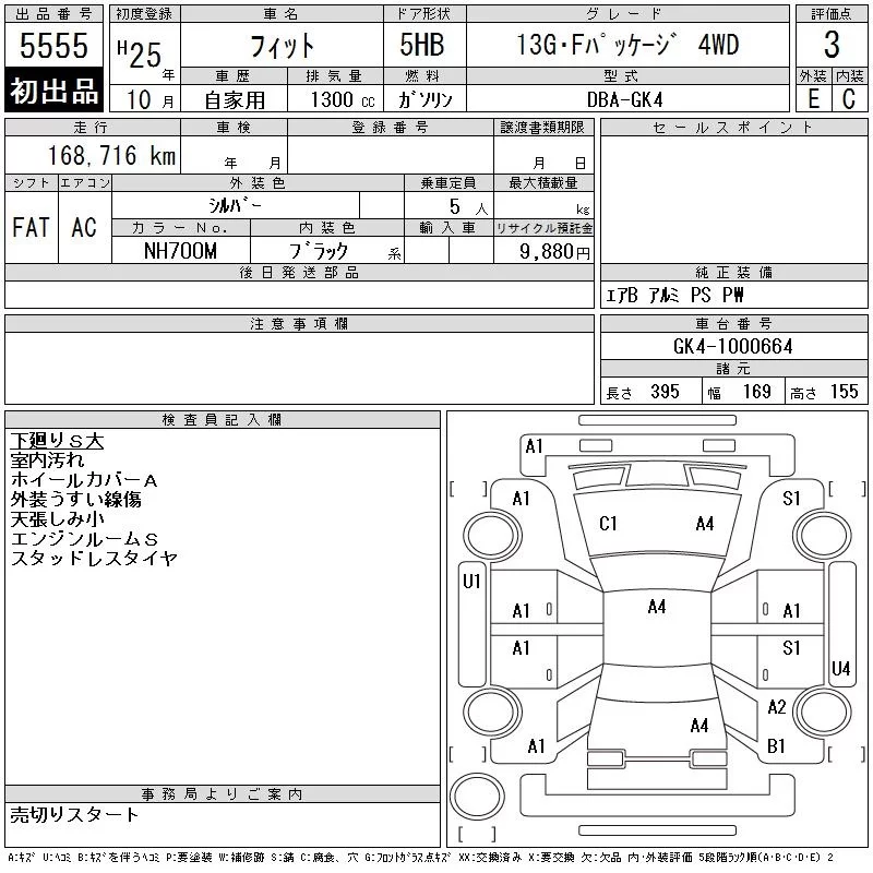 Honda FIT с аукциона Японии CAA Tohoku лот № 5555