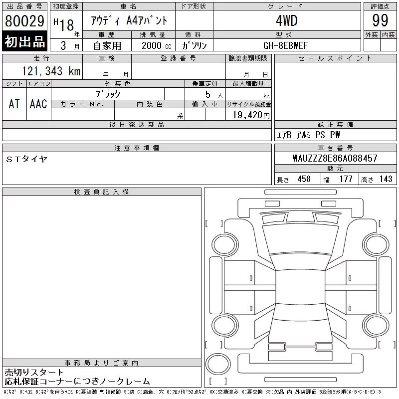 Audi A4 с аукциона Японии CAA Tokyo лот № 80029