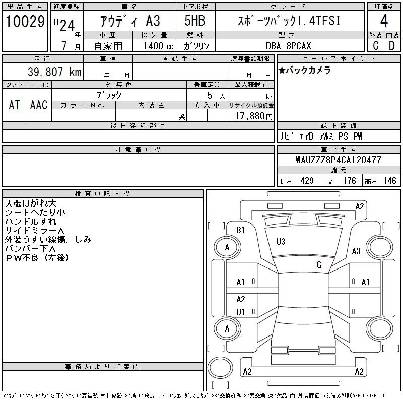 Audi A3 с аукциона Японии CAA Gifu лот № 10029