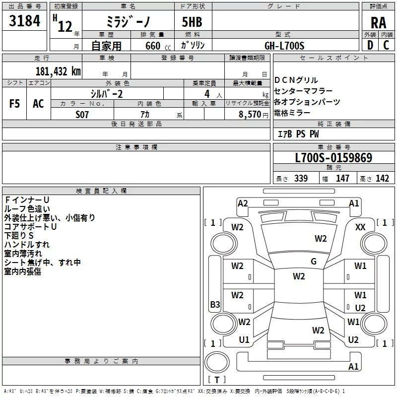 Daihatsu MIRA с аукциона Японии TAA Kyushu лот № 3184