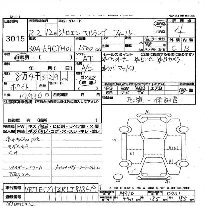 Citroen Berlingo с аукциона Японии JU Nagano лот № 3015