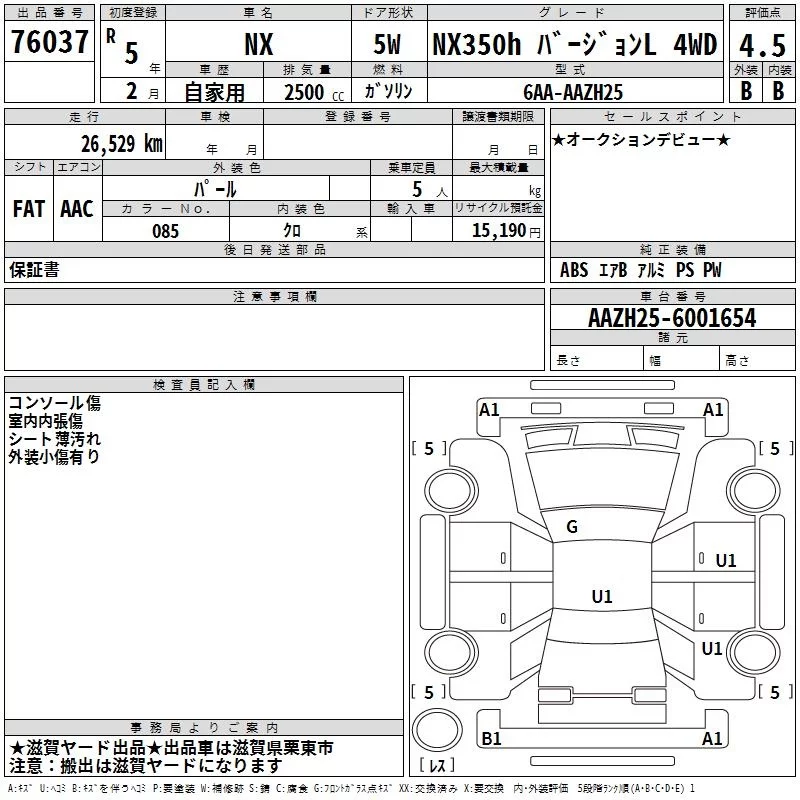 Lexus NX с аукциона Японии TAA Kinki лот № 76037