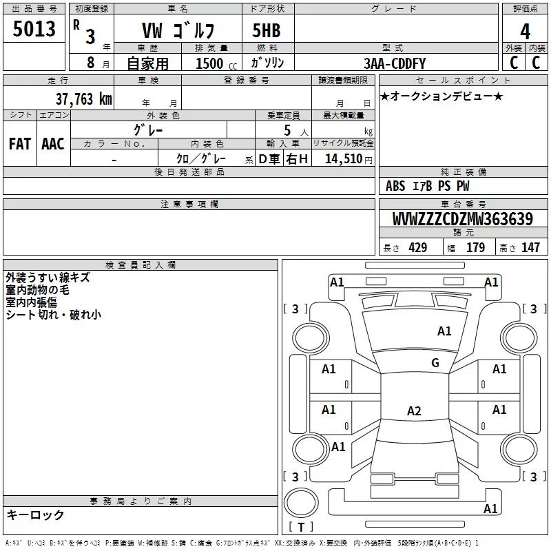 Volkswagen GOLF с аукциона Японии TAA Kyushu лот № 5013