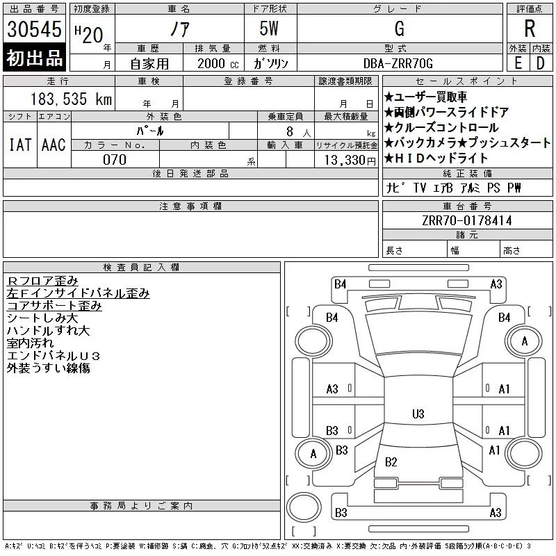 Toyota NOAH с аукциона Японии CAA Tokyo лот № 30545