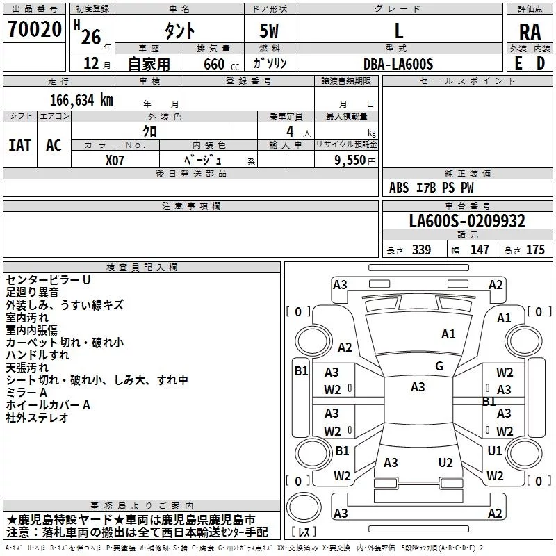 Daihatsu TANTO с аукциона Японии TAA Minami Kyushu лот № 70020