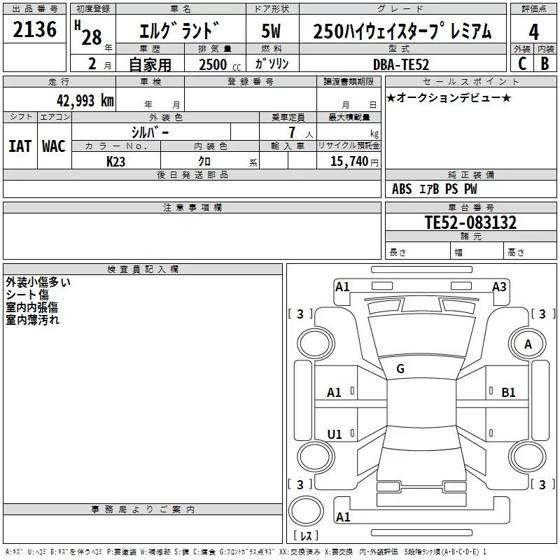 Nissan ELGRAND с аукциона Японии TAA Kinki лот № 2136