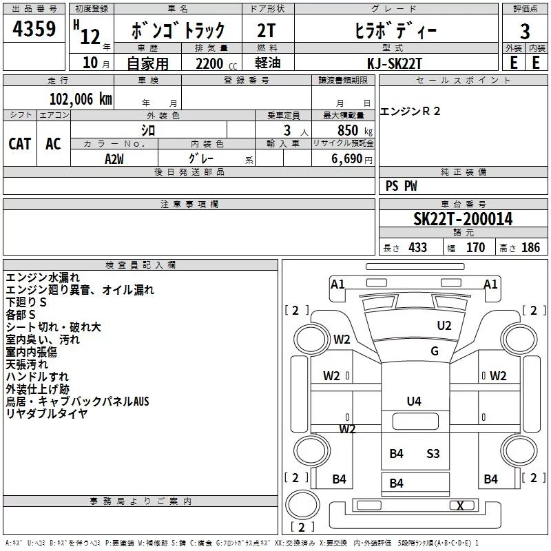 Mazda BONGO с аукциона Японии TAA Kyushu лот № 4359