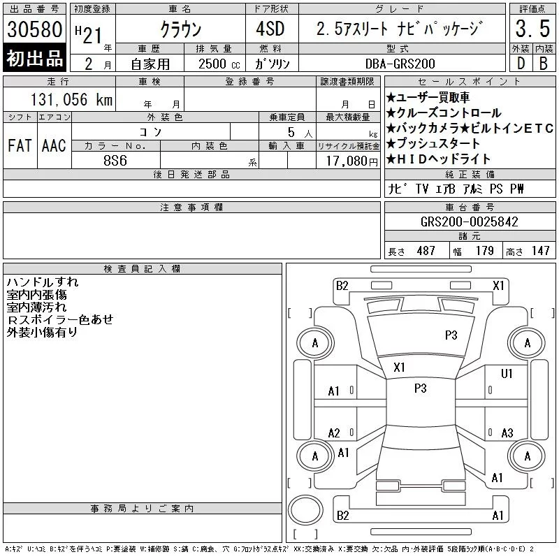 Toyota CROWN с аукциона Японии CAA Tokyo лот № 30580