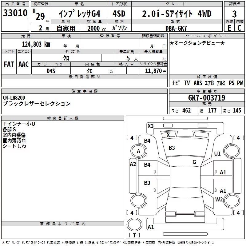 Subaru IMPREZA G4 с аукциона Японии TAA Kinki лот № 33010