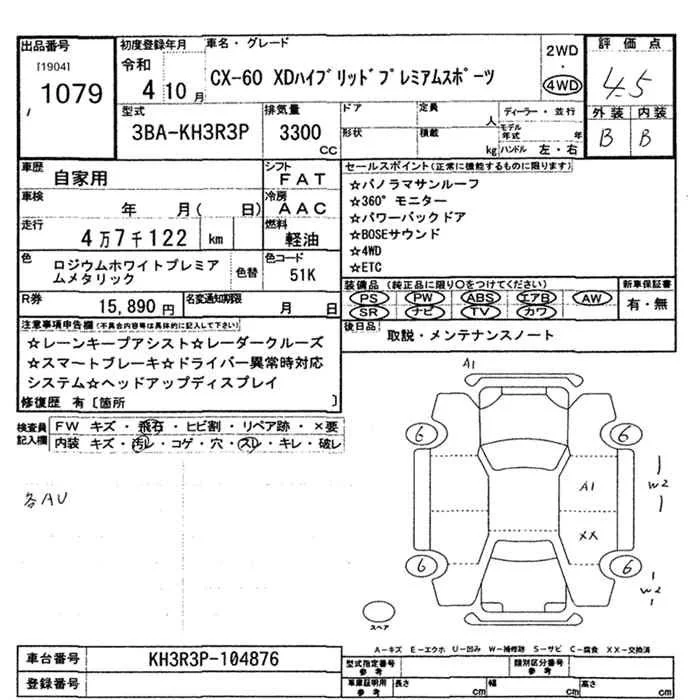 Mazda CX-60 с аукциона Японии JU Mie лот № 1079