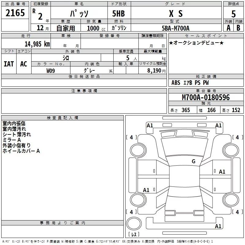 Toyota PASSO с аукциона Японии TAA Kinki лот № 2165