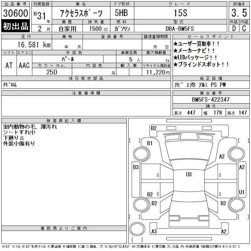 Mazda AXELA с аукциона Японии CAA Tokyo лот № 30600