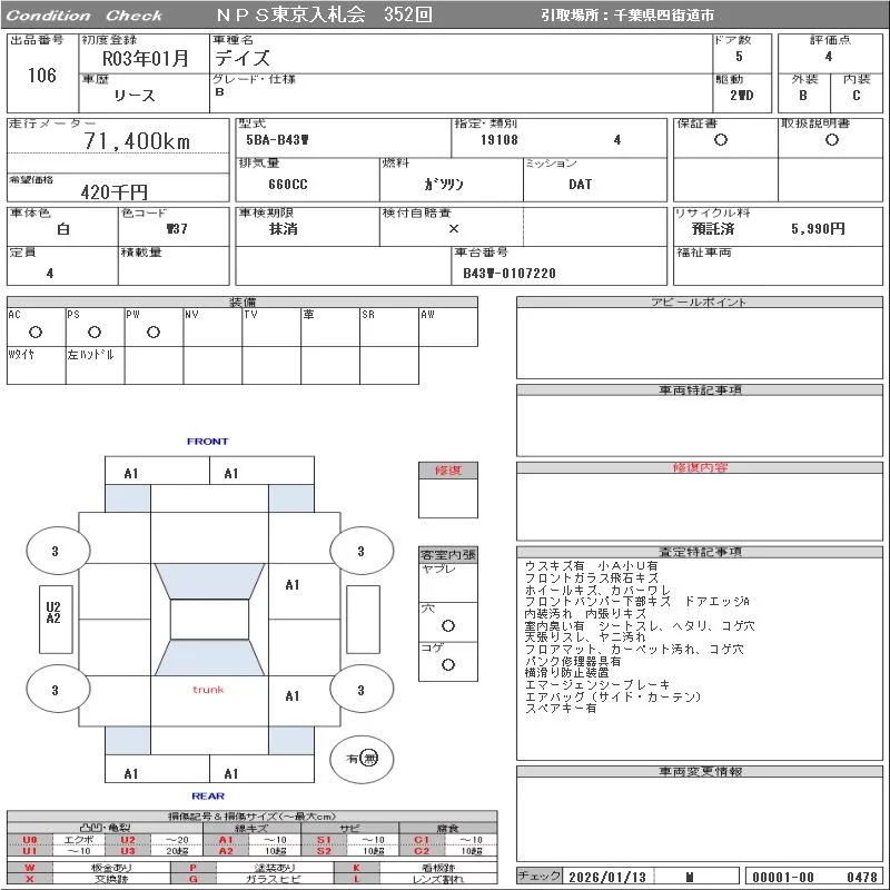 Nissan DAYZ с аукциона Японии NPS Tokyo Nyusatsu лот № 106