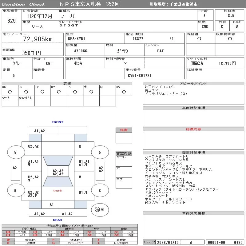 Nissan FUGA с аукциона Японии NPS Tokyo Nyusatsu лот № 829