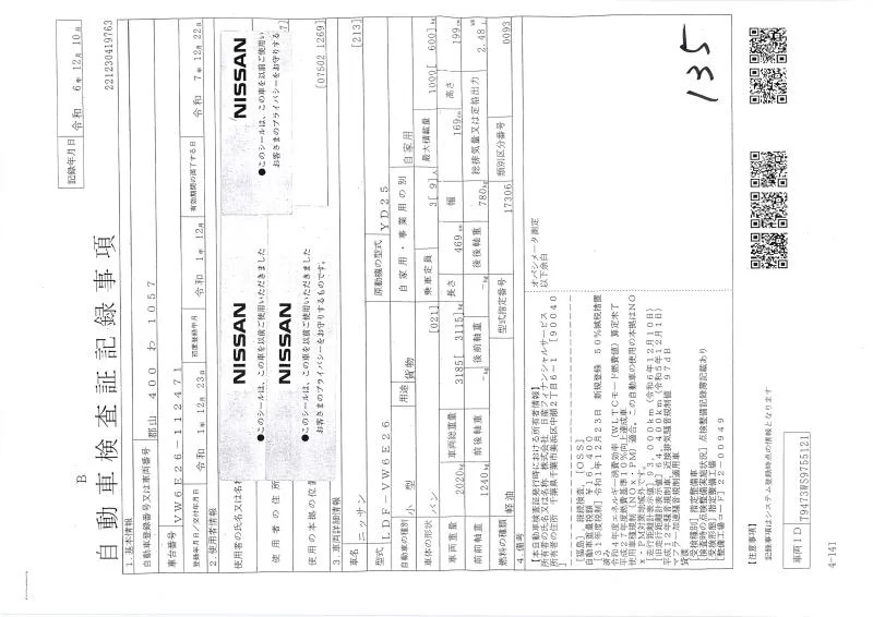 Nissan CARAVAN VAN с аукциона Японии NPS Sendai Nyusatsu лот № 3018