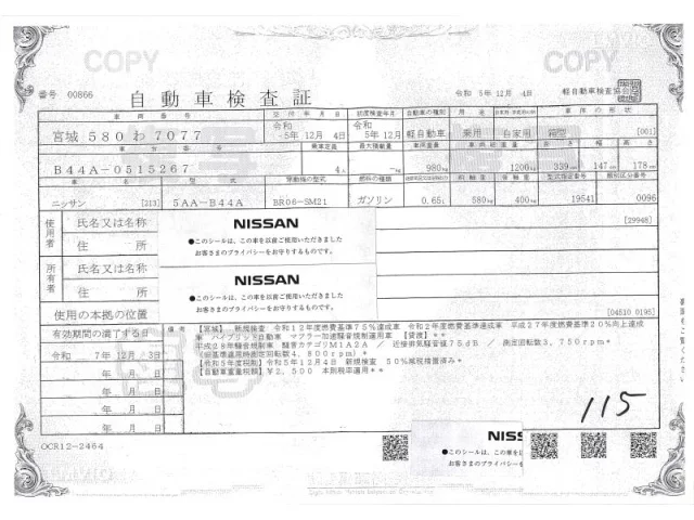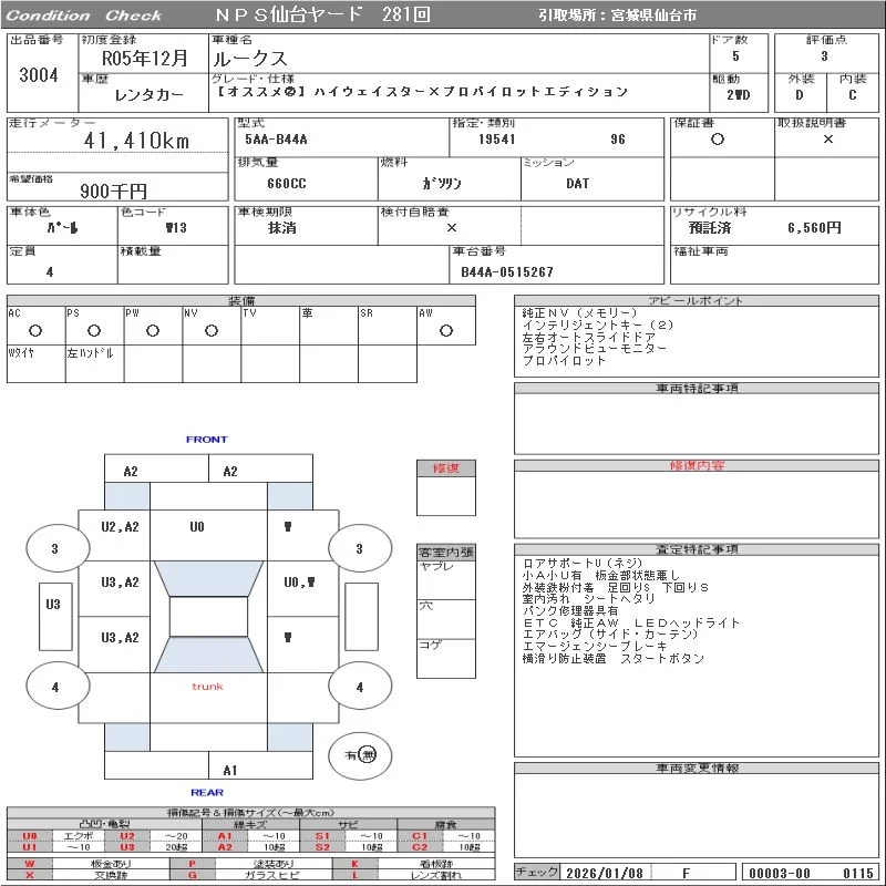 Nissan ROOX с аукциона Японии NPS Sendai Nyusatsu лот № 3004