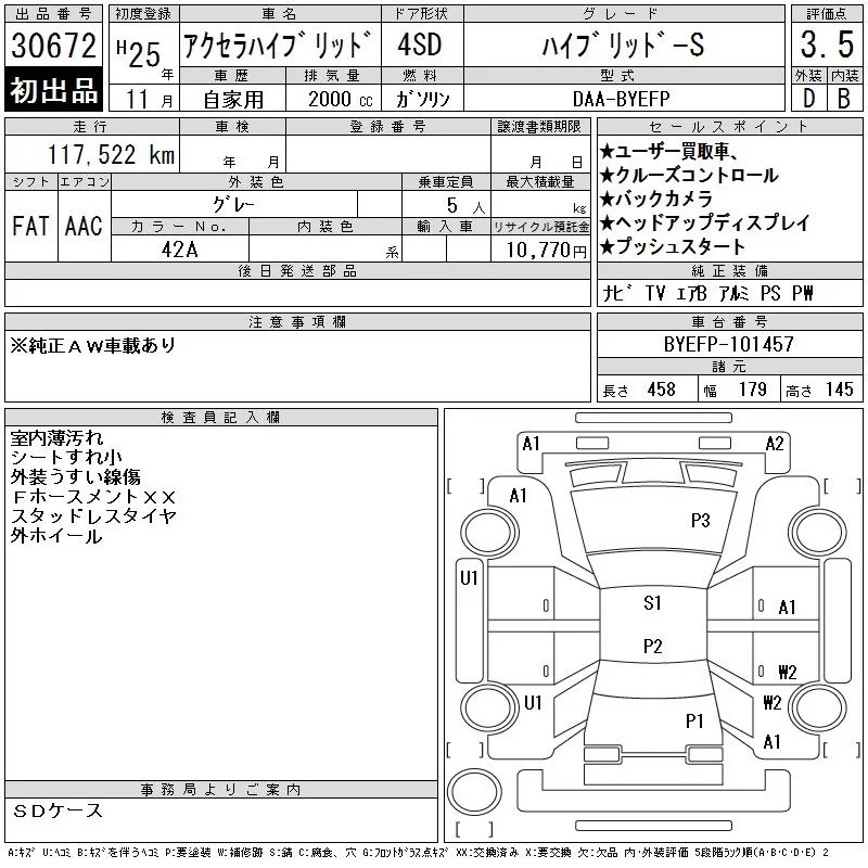 Mazda AXELA с аукциона Японии CAA Tokyo лот № 30672