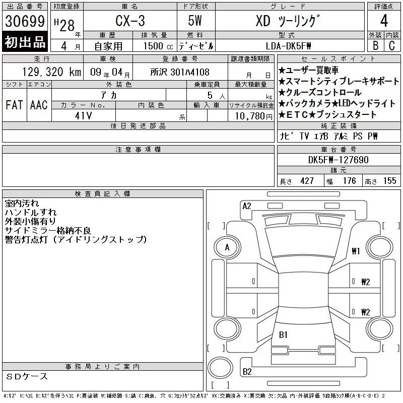 Mazda CX-3 с аукциона Японии CAA Tokyo лот № 30699