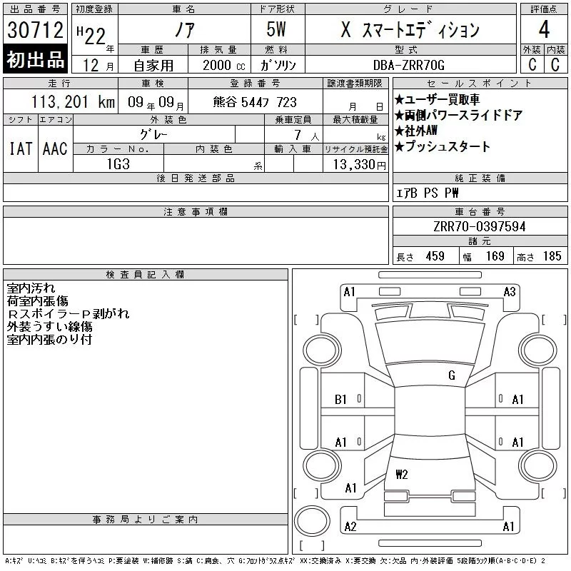 Toyota NOAH с аукциона Японии CAA Tokyo лот № 30712