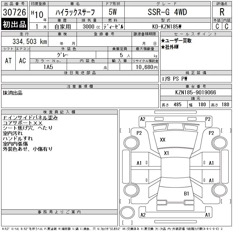 Toyota HILUX SURF с аукциона Японии CAA Tokyo лот № 30726
